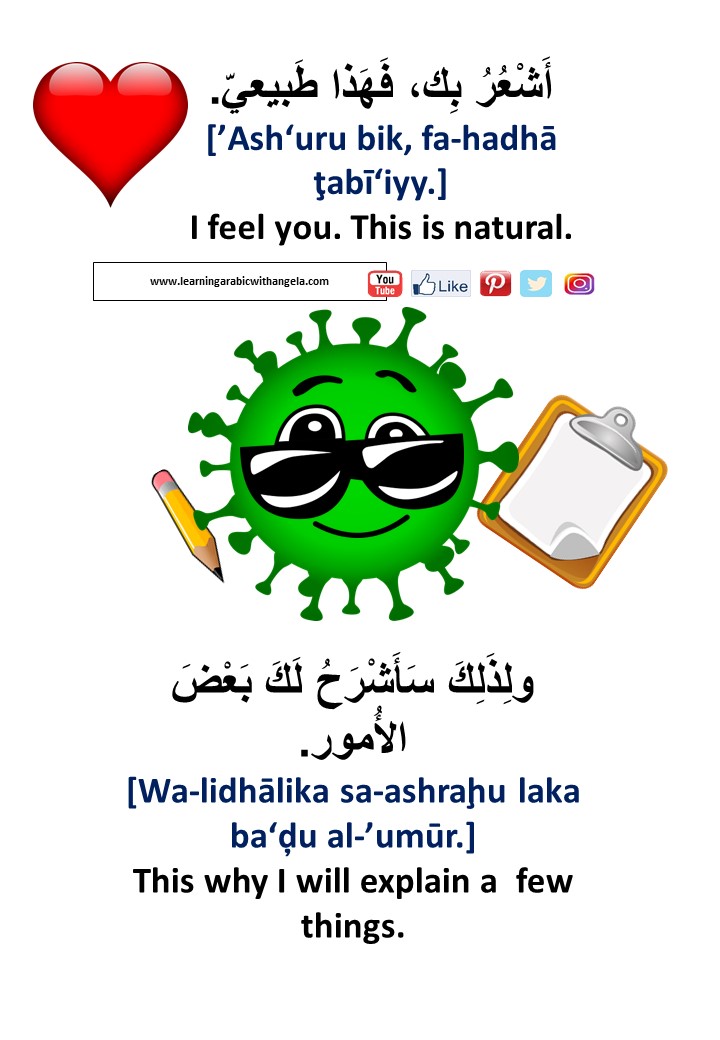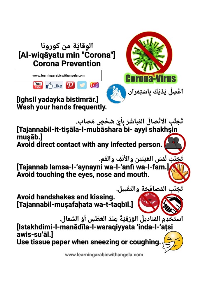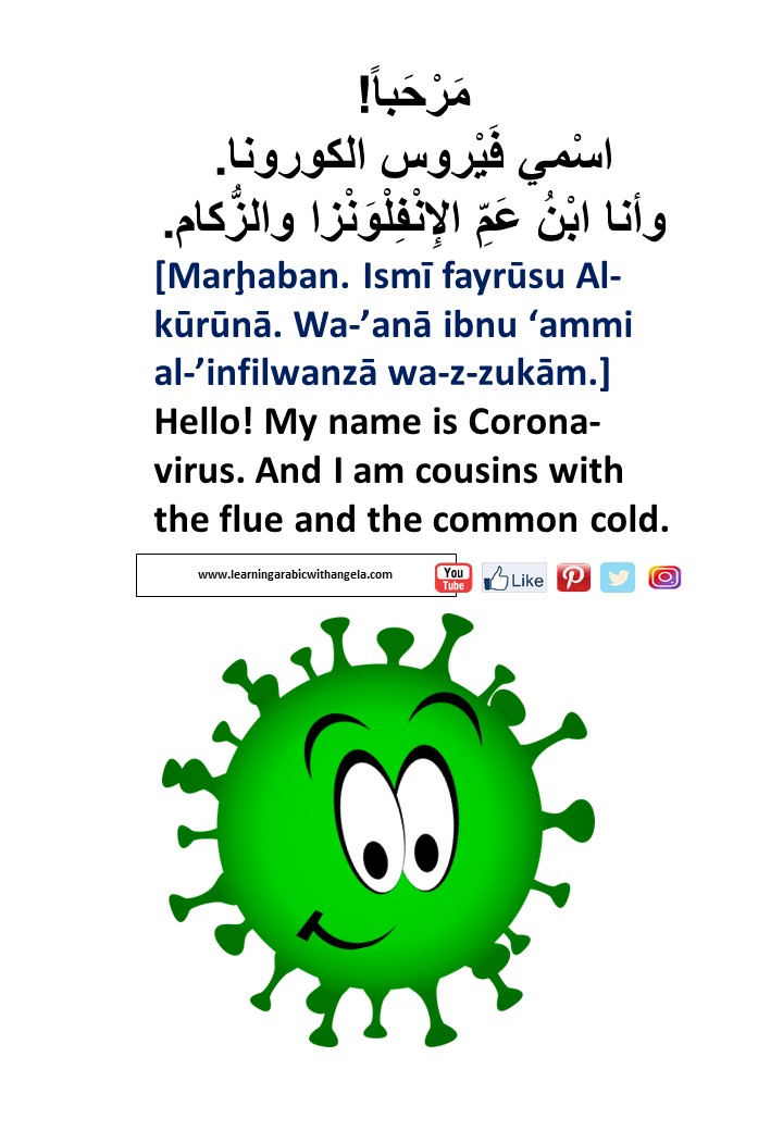 Dealing with the unknown can be worrying and scary, adults and children alike. Being factual and providing necessary knowledge can lessen the anxiety. It can be quite scary for some children when they hear and see the adults reactions about the Coronavirus. This free booklet was inspired by similar booklets I have seen online, but unfortunately were not in Modern Standard Arabic. It aims at providing the basic virus-related precautions and knowledge, while keeping it fun and simple, as well as improving the knowledge of Arabic language and expanding learners' vocabulary.